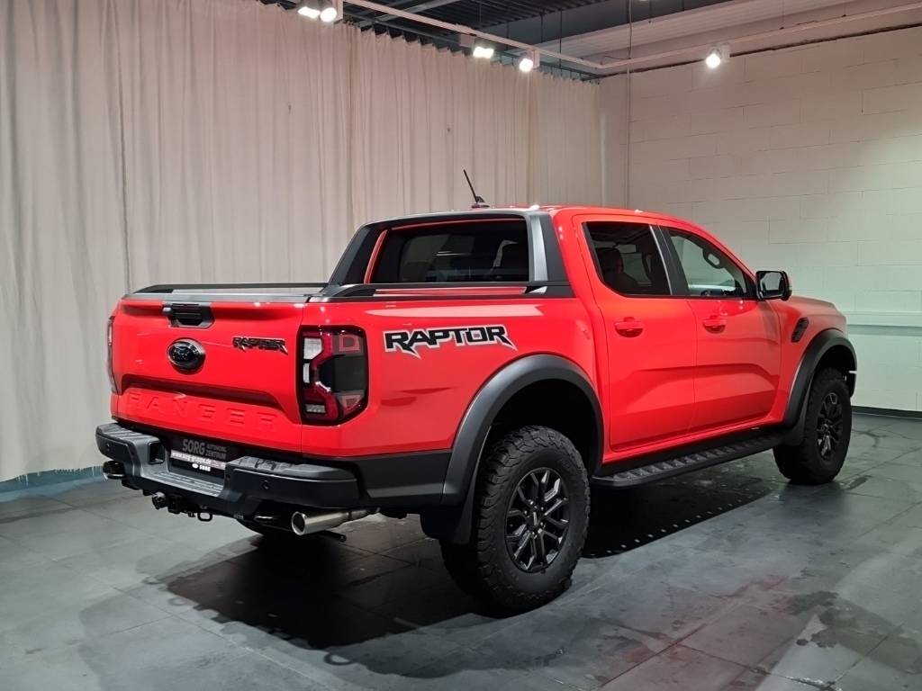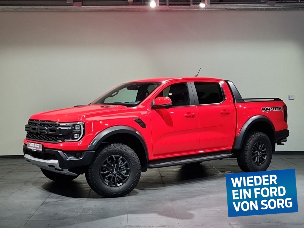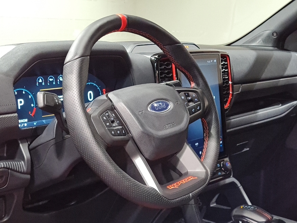 Anhängevorrichtung 13-polig, Ford KeyFree System, Außenspiegel elektrisch einstellbar, beheizbar, elektrisch anklappbar und mit integrierten Blinkleuchten und Umfeldbeleuchtung, Seitenscheiben ab 2. Sitzreihe und Heckscheibe dunkel getönt, Laderaumschutzwanne, Heckklappenschloss elektrisch ohne Schließzylinder, Motorschutz (Stahl) und Tankschutz (Plastik), Raptor-Paket: Sportbügel, Laderaum-Sportreling, Elektrisches Laderaumrollo, Off-Road-Paket: Drehschalter-Fahrmodi, Terrain-Management-System mit 7 wählbaren Fahrmodi, Heckklappe Easy Lift